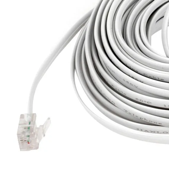 This telephone extension cord is designed for versatile use with telephones, fax machines, modems, and answering machines. It features a 33-foot length, providing ample reach for most office or home settings. Made from materials, it is durable and reliable, resistant to damage or breakage. The cord is equipped with a 6P2C RJ11 plug, suitable for standard telephone equipment. The copper wire ensures high conductivity and low impedance, with plug contacts coated in thicker gold plating for excellent connection and call quality. Insulation and sheath are crafted from quality PVC material, offering a smooth, defect-free surface and good insulation properties. Ideal for phone line replacements and modular office and home phones that require extension cords to cover large indoor areas.