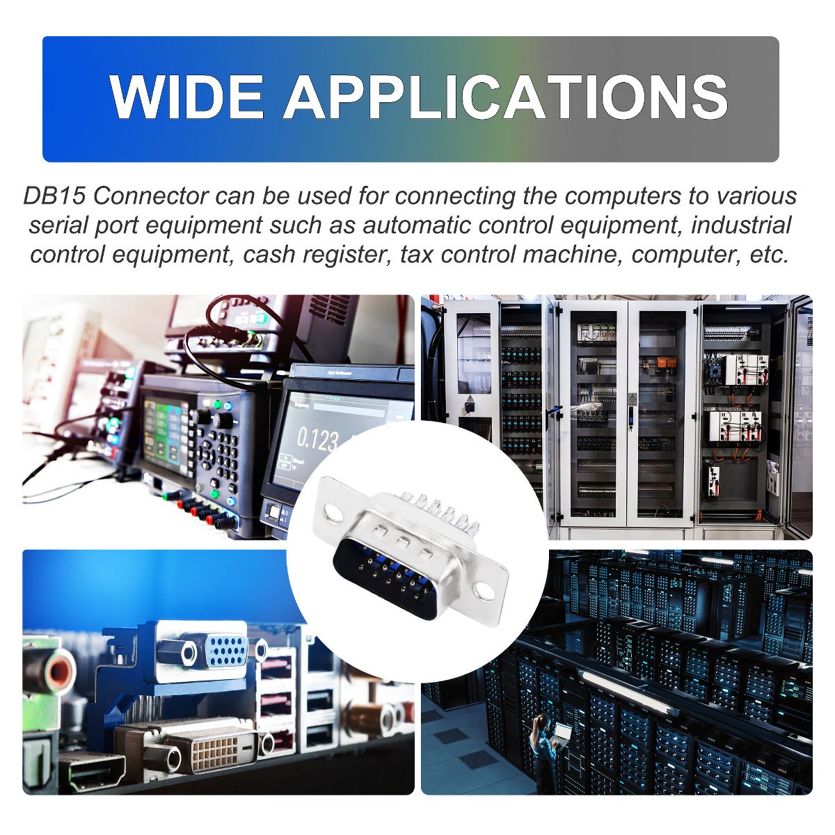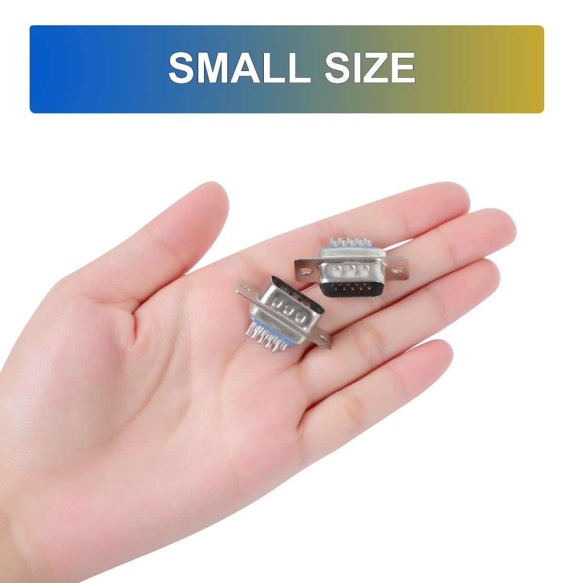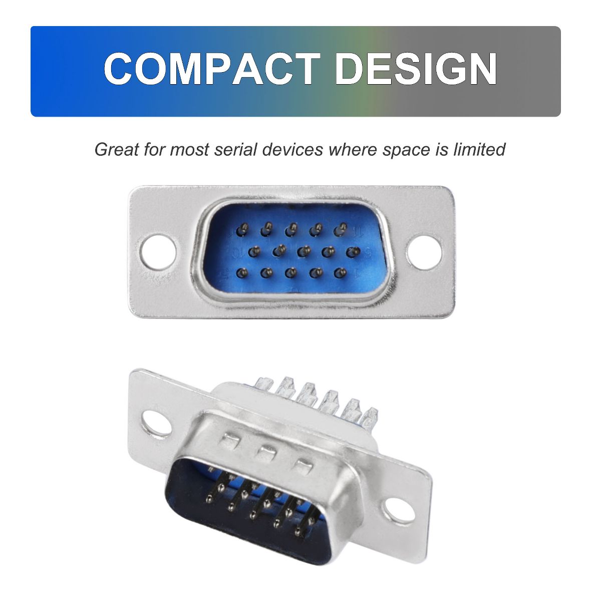 The set of 2pcs DB15 male D-sub connectors is versatile connectors designed for soldering applications. Each connector features a 3-row design with 15 pins, making it suitable for various VGA adapter connections. These connectors are commonly used in computer systems, monitors, projectors, and other VGA-compatible devices. They provide a reliable and secure connection for efficient data transfer and video signal transmission. The male gender connectors can be used with monitors, HDTV,and KVM. They are simple plug-and-play designed, making them easy to install. Widely used in computers, communication equipment, industrial control systems, audio/video devices, and more.