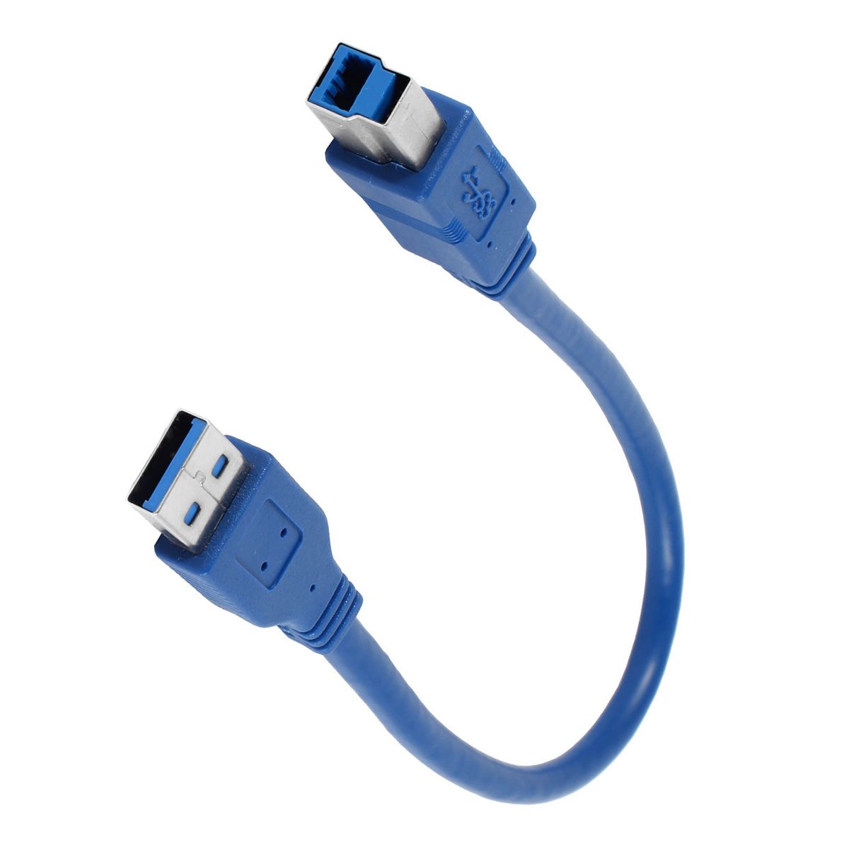 This USB A to USB B 3.0 cable is crafted for efficient data and power transfer. It connects devices like scanners, printers, and external hard drives with ease. The cable, measuring 0.3 meters, is vibrant blue and built for durability. Its construction ensures reliable transmission. It supports higher electrical currents for bus-powered USB 3.0 devices. Please note that colors might appear different on various monitors. Slight deviations in measurements may occur.