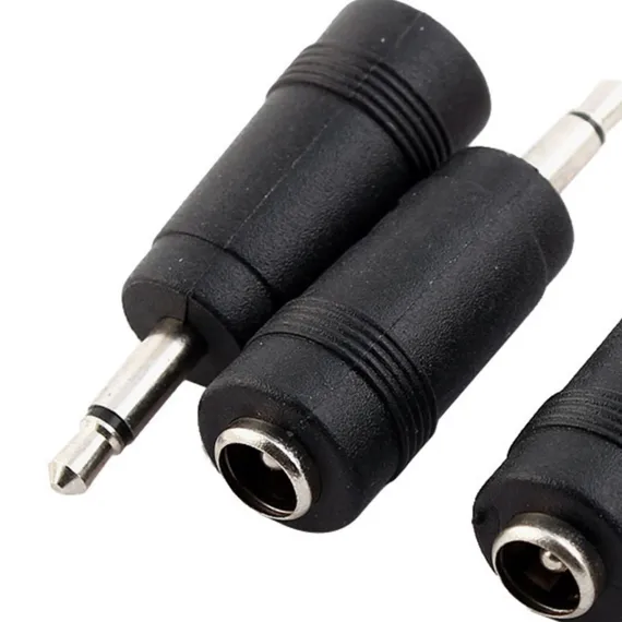 This DC Power Adapter features a 3.5mm male to 5.5mm x 2.1mm female connector, made from metal and plastic. It serves as a reliable replacement for old and damaged connectors. The adapter is designed with a mono jack to ensure a stable connection and is suitable for various application scenarios. Its portable and compact design makes it convenient for on-the-go use. This product package includes 4 pieces of DC power adapter connectors.