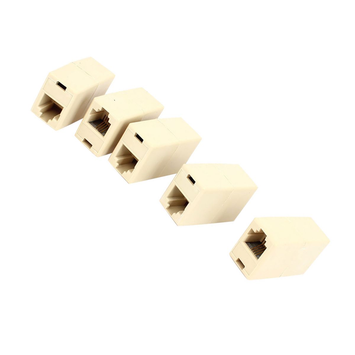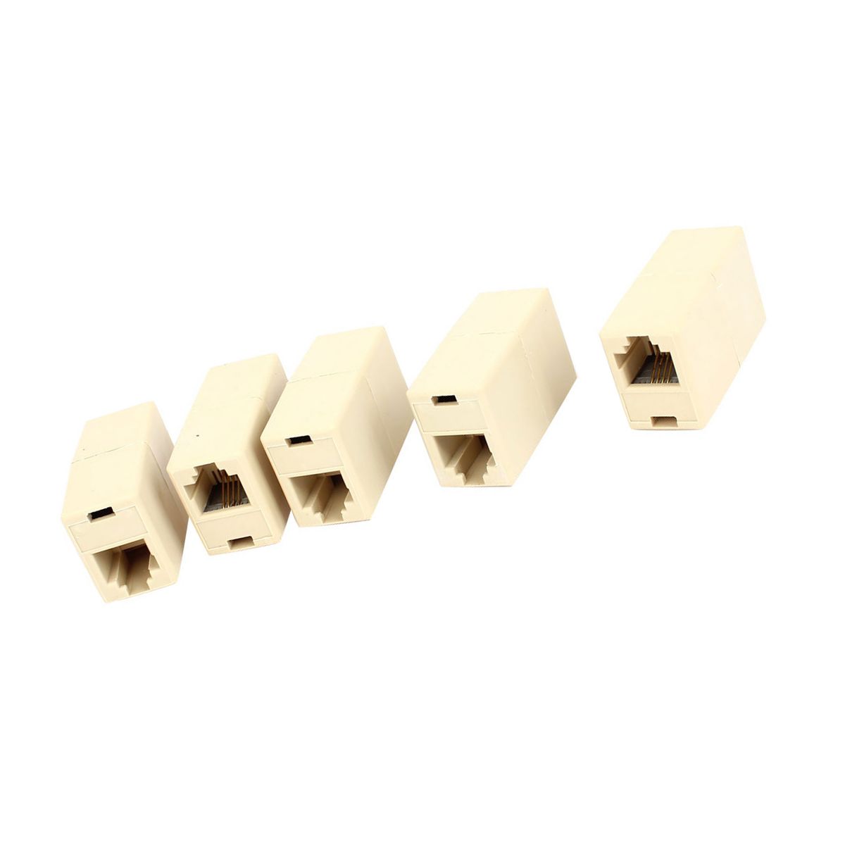 Unique Bargains Plastic RJ11 6P4C Telephone Cable Inline Connector Beige 5 Pcs