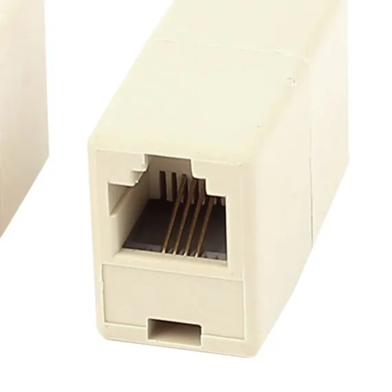 The RJ11 6P4C female/female straight coupler is designed to extend the length of two telephone cables easily and simply. It provides accurate signal transmission, a stable connection, and low signal attenuation. Suitable for all telephones and fax machines, this coupler is a reliable assistant for office meetings. Made from plastic, it connects two RJ11 6P4C phone cables via a female-to-female connection without the need for tools. Its compact size makes it portable and easy to carry, eliminating the need for longer phone cables.