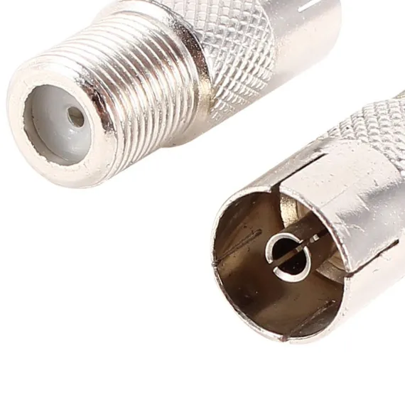 This adapter is designed to convert F-type female connectors to TV PAL female connectors, facilitating easy connections between different devices. Made of quality metal, it offers durability and stability for reliable signal transmission. It fits common F-type and TV PAL interfaces and is suitable for a wide range of TVs, antennas, tuners, and coaxial cables. The adapter is small, lightweight, and portable, making it convenient for on-the-go connections. Its quick-connect design ensures easy and fast installation by simply inserting or removing it.