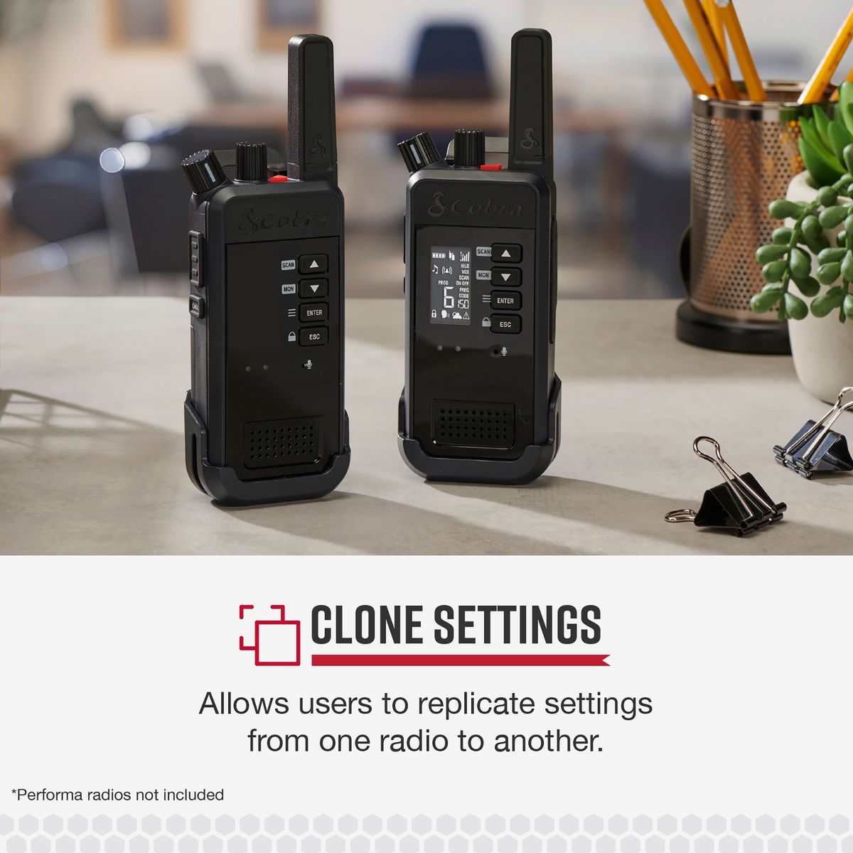 Is your company using Cobra® Performa 2-way handheld business radios? Use this special USB-C® to USB-C® cable to connect to 2 Performa radios together. This allows you to quickly clone settings from 1 Performa radio to another. It provides simple, foolproof programming in the field and doesn’t require a computer. _