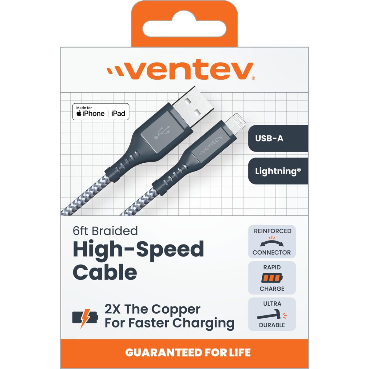 Ventev Braided Usb-A To Apple Lightning High Speed 6 Foot Cable Gray