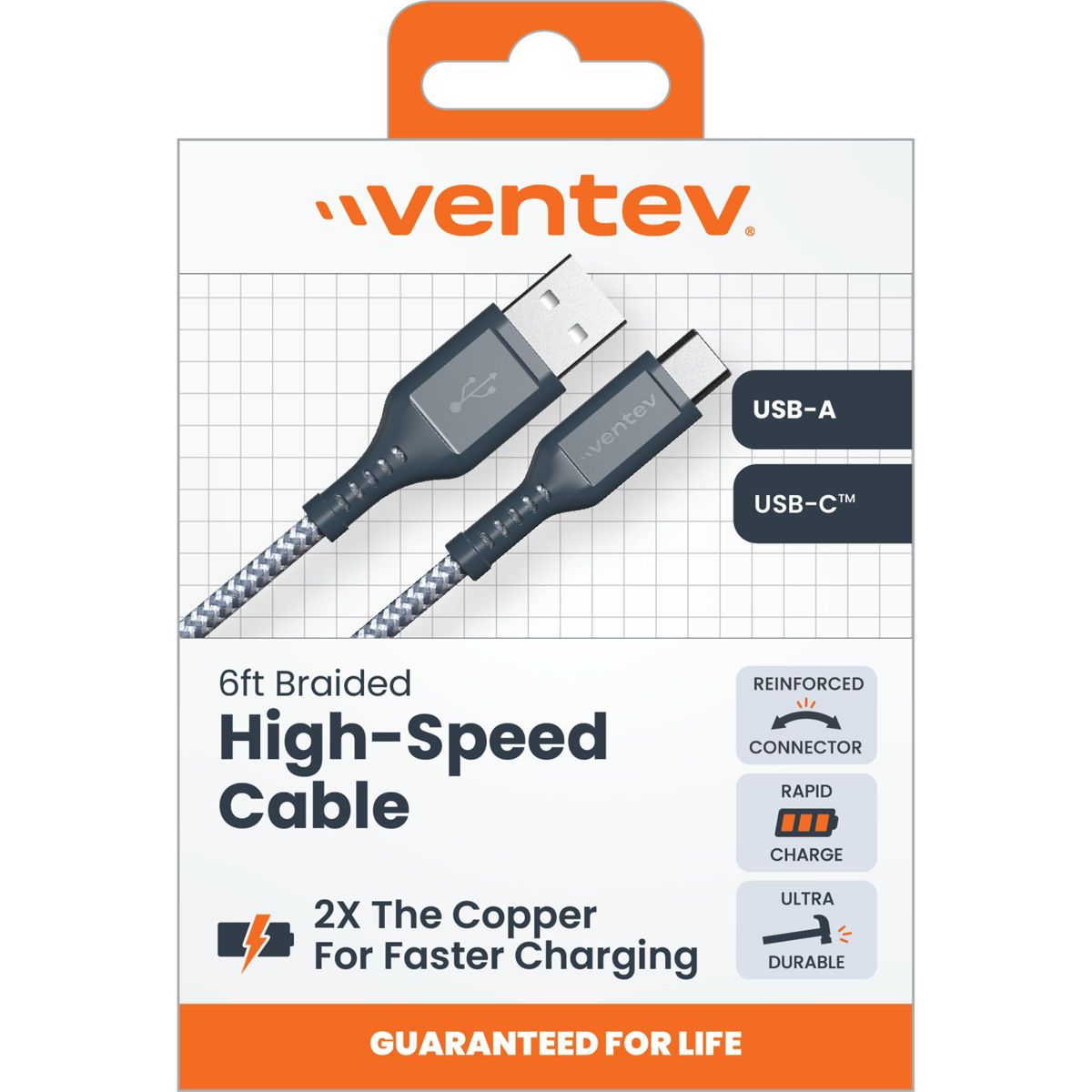 Ventev Braided Usb-A To Usb-C High Speed 6 Foot Cable Gray