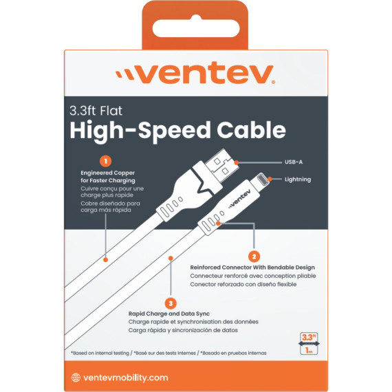 Ventev Flat Usb-A To Apple Lightning High Speed Tangle-Free 3 Foot Cable Gray
