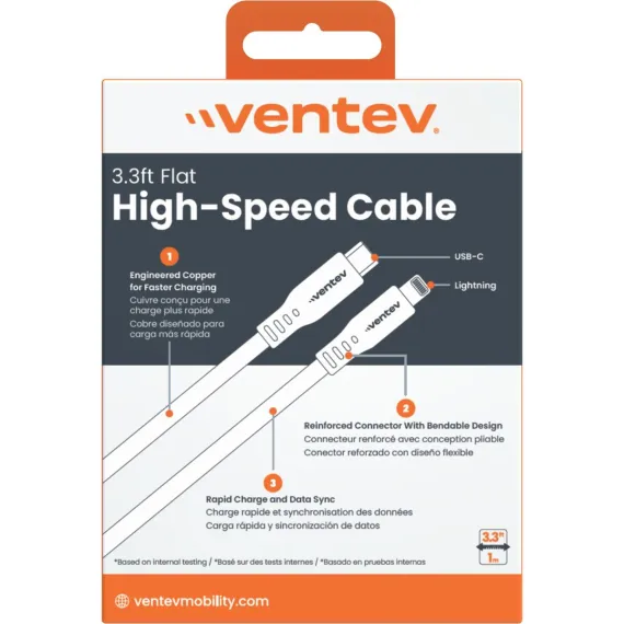 Ventev Flat Usb-C To Apple Lightning High Speed Tangle-Free 3 Foot Cable Gray