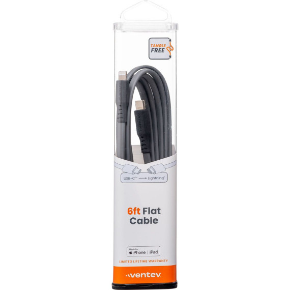 Ventev Flat Usb-C To Apple Lightning High Speed Tangle-Free 6 Foot Cable Gray