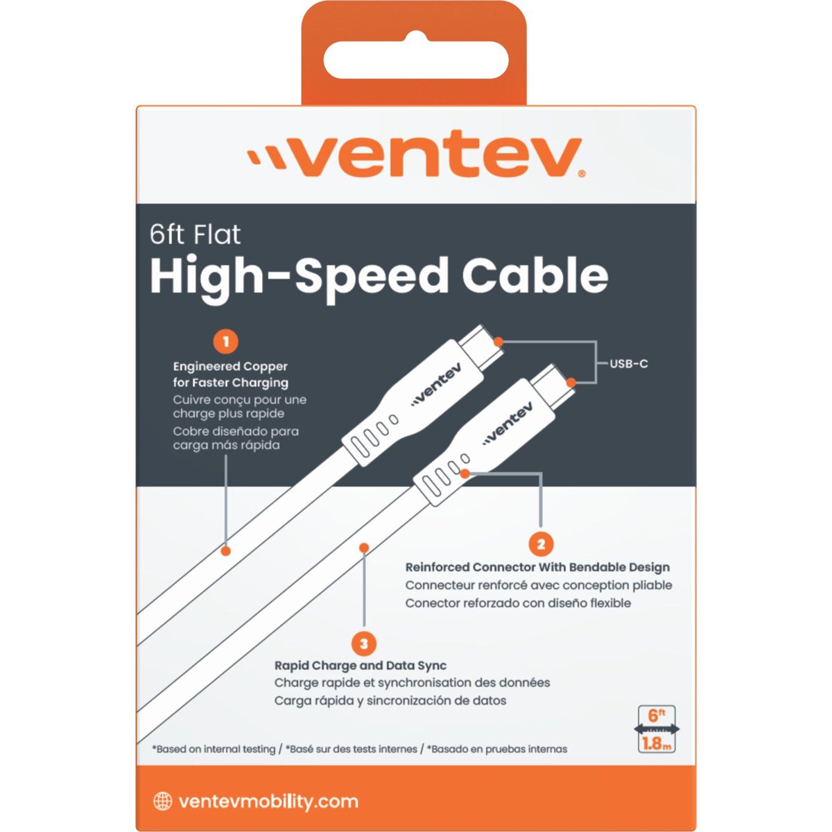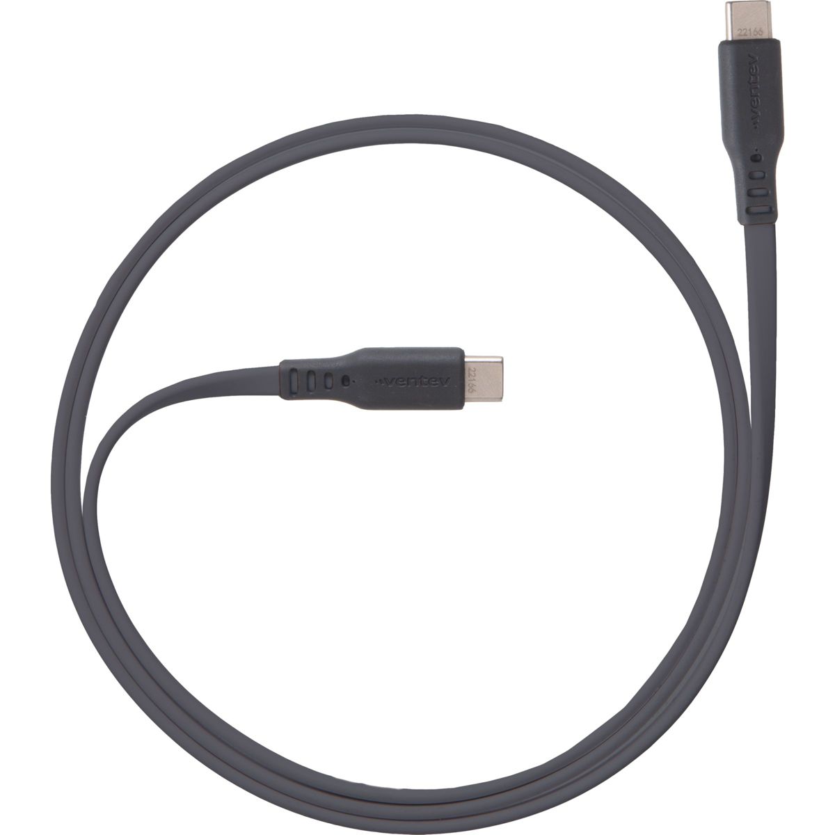 Ventev Flat Usb-C To Usb-C High Speed Tangle-Free Cable 6Ft Gray