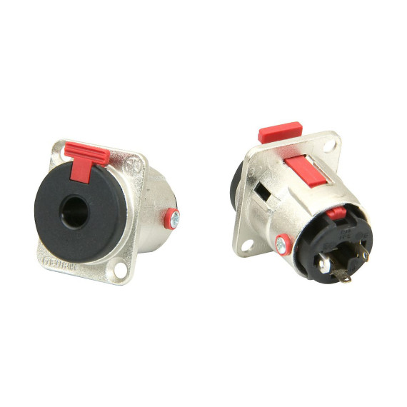Neutrik D series panel mount TRS 1/4" locking jack (package contains 2 connectors). Mounts a 1/4" to an amp or mixing board and locks cable in tightly.