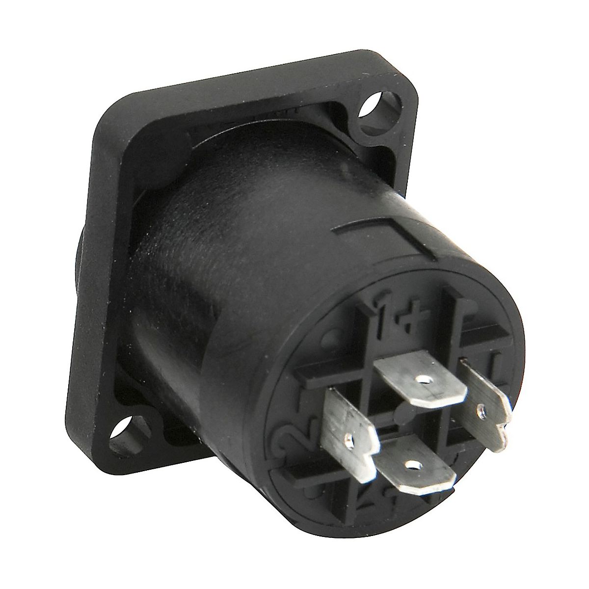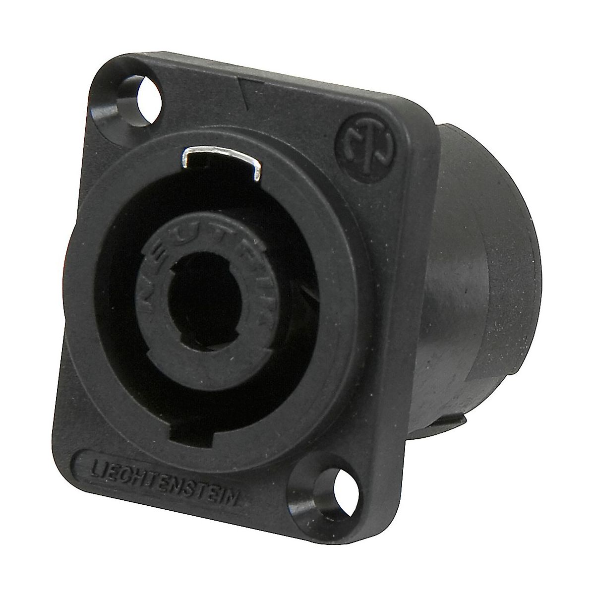 The speakON cable connectors are the industry-standard connectors for amplifier/loudspeaker connections. These 4-pole cable connectors are designed to operate in the high current, inductive load environment of loudspeakers. The cable connectors feature a robust plastic housing, the traditional Neutrik chuck type cable clamp, a unique locking principle and touch proof contacts. Neutrik D series panel mount, male, 4-pole speakON connector (package contains one connector).