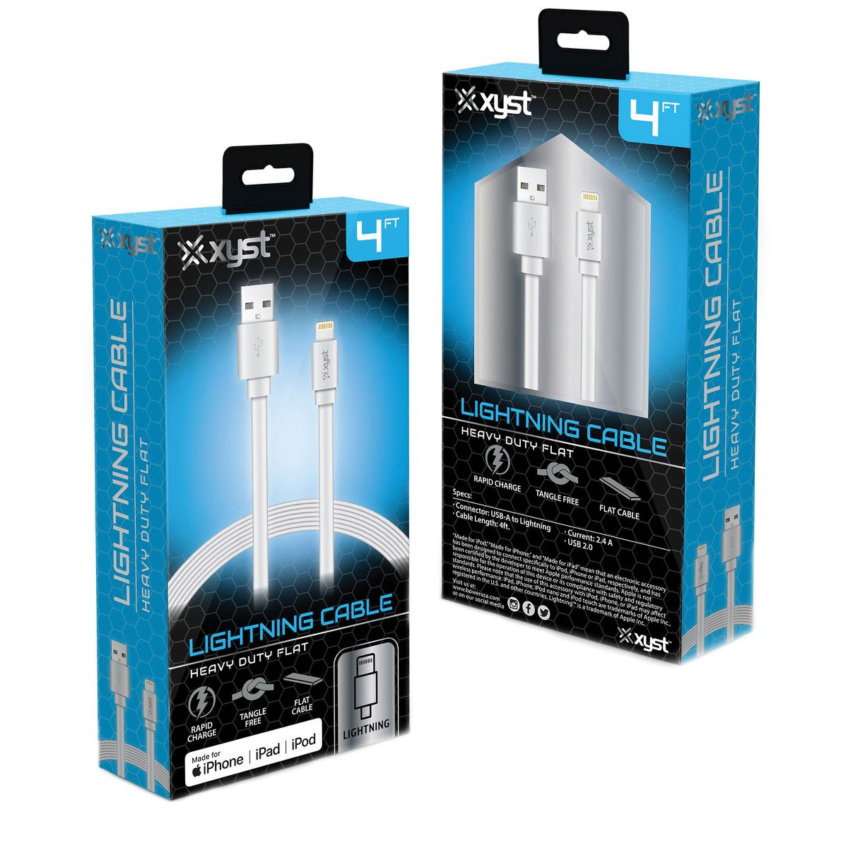 Need a flexible and tangle-free charge and sync cable to meet daily connection needs? Keep your Apple® iPhone®, iPad®, or iPod® fully charged and synced with the Charge and Sync USB to Lightning® Flat Cable from XYST™. This White compact Lightning® connector head design ensures that the iPhone® charger cable fits most phone cases and accessories. The 4 ft. Lightning® cable is extended enough to use in the office, car, or home. You can enjoy safe, fast charging anytime and anywhere.