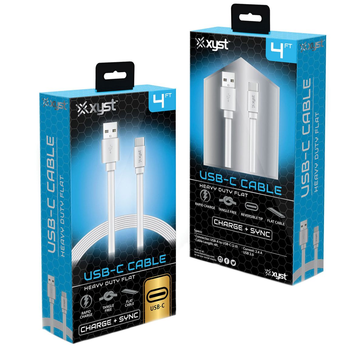 Need a flexible and tangle-free charge and sync cable to meet daily connection needs? Keep your devices fully charged and synced with the Charge and Sync USB to USB-C Flat Cable from XYST. This White compact Type-C connector head design ensures that the charger cable fits most phone cases and accessories. The 4 ft. cable is extended enough to use in the office, car, or home. You can enjoy safe, fast charging anytime and anywhere. _
