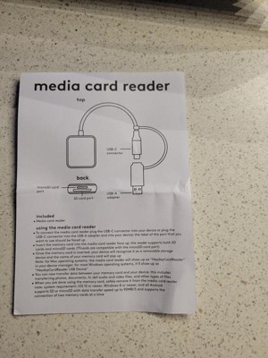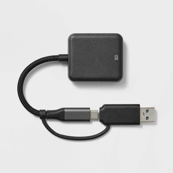 Experience seamless data transfer with the sleek Card Reader from heyday™ in Black. This USB-C to USB-A adapter effortlessly connects to your devices, allowing you to access and manage your SD and microSD cards with ease. Designed for easy portability, its lightweight construction lets you easily tuck it in a corner of your backpack and carry it around with ease.