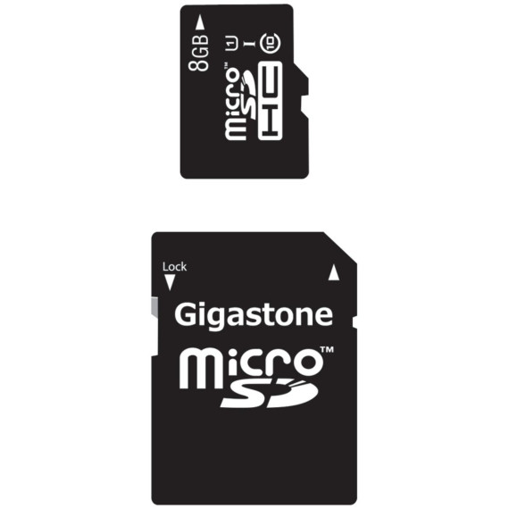 Capture the exciting moments of your life with this Gigastone 8-GB Class 10 UHS-1 microSDHC Card and SD Adapter with up to 48 Mbps Transfer Rates. Gigastone microSDHC cards are stable and reliable to provide excellent performance. microSDHC cards will work in both microSD and microSDHC devices. And thanks to the included SD adapter, it work with SD devices, too.