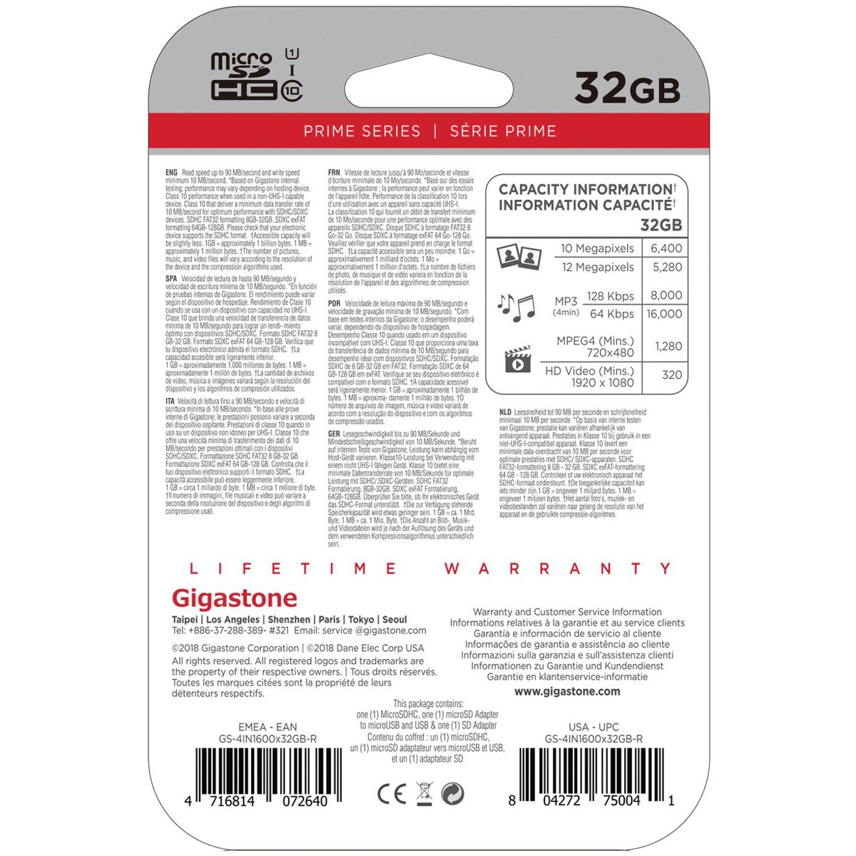 Capture the exciting moments of your life with the Gigastone UHS-1 Class 10 microSD Card. The high-performance 32 GB memory card has high data transfer speed up to 90 MB per second and is designed to help you get the best results when shooting Full HD video and high-resolution photos. This 4-in-1 kit contains card, card reader, USB cable and adapter.