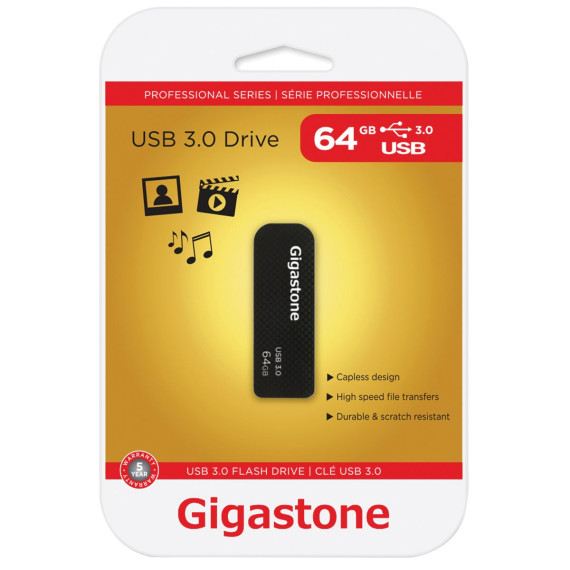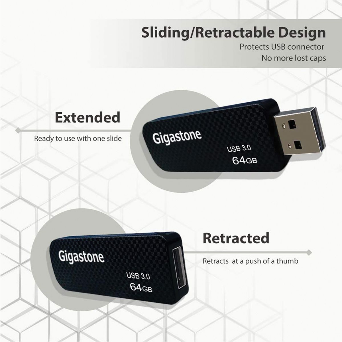Gigastone® Z30 USB 3.0 Retractable Flash Drive (128 GB) in Black