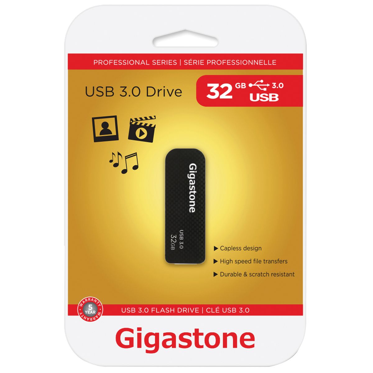 Share every special moment with friends and family by using this Gigastone® Z30 USB 3.0 Retractable Flash Drive. It is the ideal solution for storing and transferring documents, photos, videos and music. They also provide a convenient storage expansion option for desktops, laptops, tablets, etc. It also has a unique, retractable, and durable housing that makes it easy to handle and use.