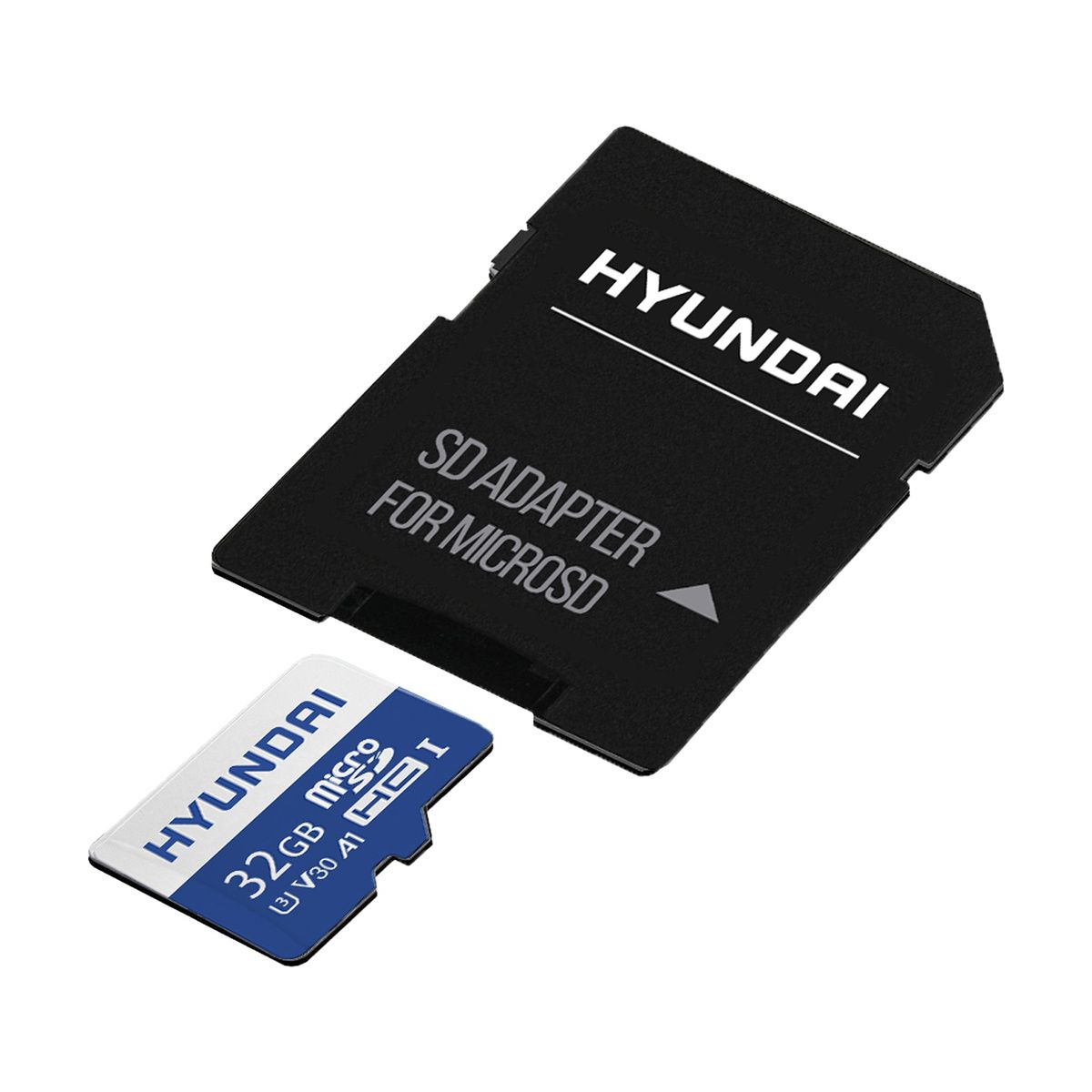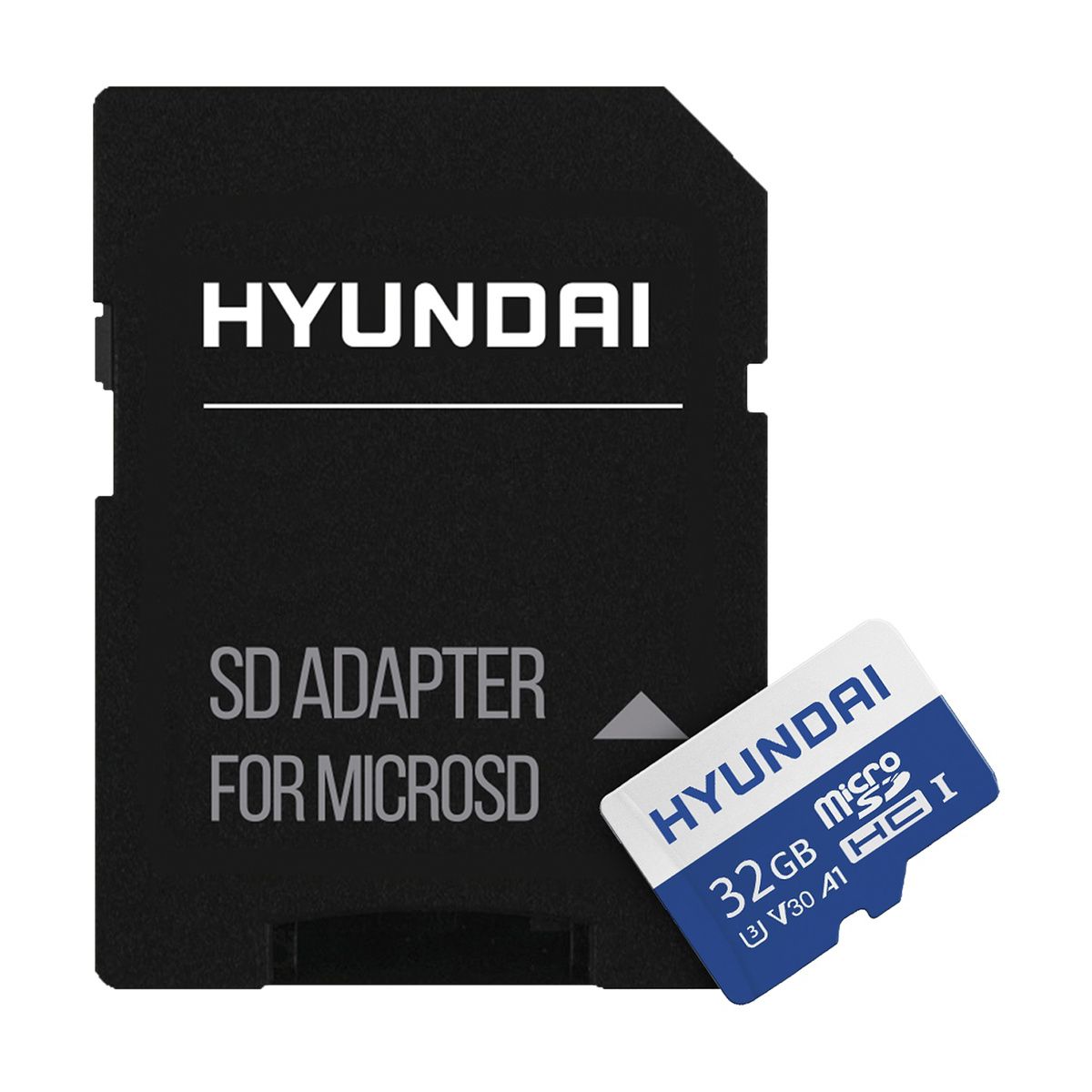 Hyundai 32GB microSDHC UHS-I Memory Card with Adapter, 90MB/s (U3), UHD, A1, V30 - Up to 30MB/s write speeds for fast shooting. Full UHD ready with UHS Speed Class 3 (U3) and Video Speed Class 30 (V30). Rated A1 for faster loading and in app performance. Compatible with Smartphones, Android Tablets, Tablet PCs, and more. Built for and tested in harsh conditions: Temperature Proof, Water Proof, Shock Proof and X-Ray Proof