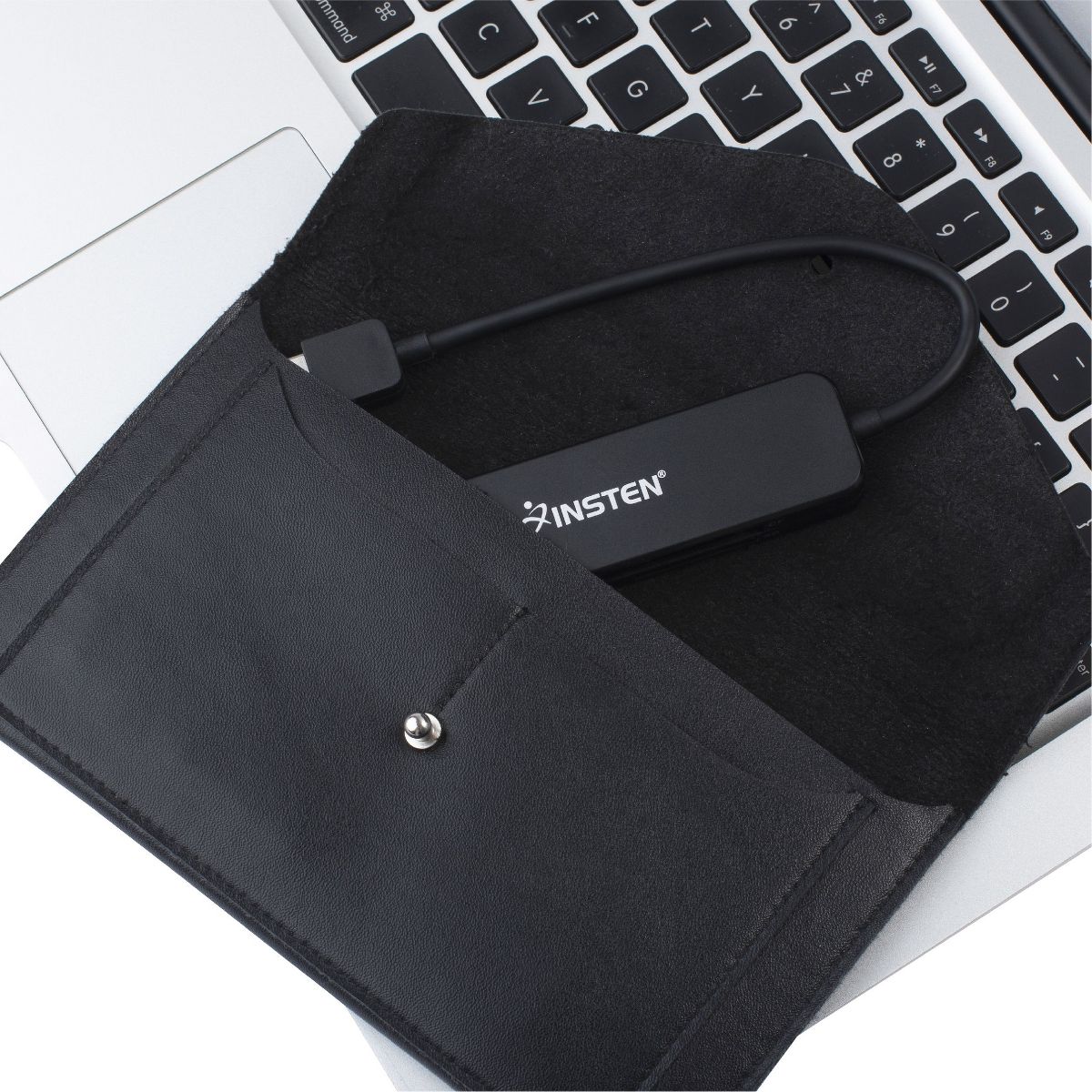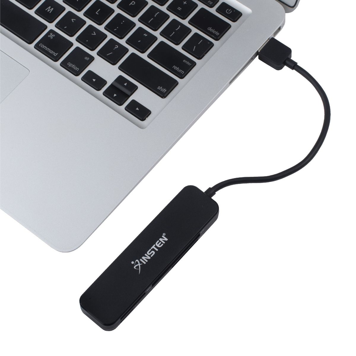 Insten 4 Slot Card Reader with Storage Pouch Compatible with USB 3.0, Simultaneously Reads/Writes SD, CF, MS, and microSD Memory Cards (Black)