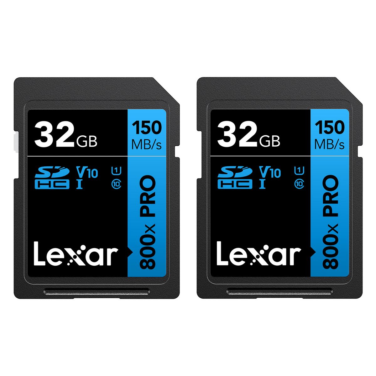 The Lexar® High-Performance 800x PRO SDHC™/SDXC™ UHS-I Card BLUE Series is designed for point-and-shoot and mid-range DSLR cameras and HD camcorders. The card features fast transfer speeds of up to 150 MB/s so you can accurately capture and quickly transfer high-quality images and 4K UHD video. This is a 2 pack.