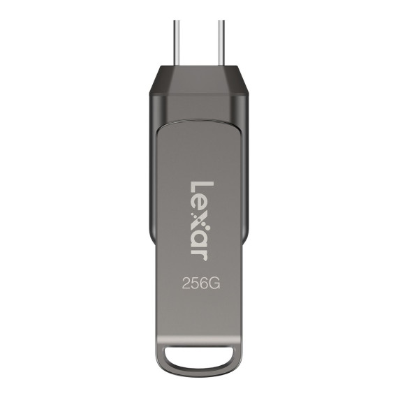 The Lexar® JumpDrive® D400 Dual Drive is a 2-in-1 flash drive that allows you to seamlessly transfer content between your USB-C® and USB-A devices. Featuring a stylish metal casing and swivel design for added protection, this drive is as tough as it is fast, with read transfer speeds up to 130 MB per second. The USB drive is compatible with Android™, PC, and Mac® systems and provides the opportunity to protect its contents with a password.