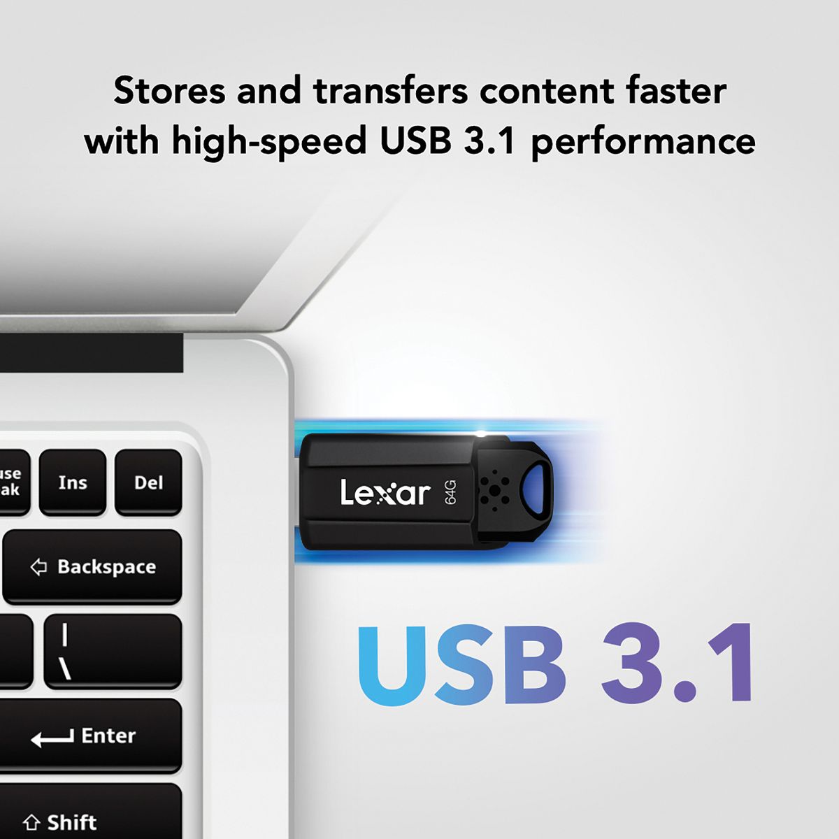 The high-performance Lexar® JumpDrive® S80 USB 3.1 Flash Drive allows you to quickly and securely transfer photos, videos, and files with speeds up to 150 MB/s read and 60 MB/s write. Now you can quickly transfer a 3 GB 4K movie clip in less than 1 minute, compared to the 4 minutes it takes using a standard USB 2.0 drive. This drive also has advanced security software to help give you peace of mind knowing your files are safe as well as a retractable connector to protect the end when it's not in use. It’s also backward-compatible with USB 3.0 and 2.0 devices, providing added versatility. It comes with a 3-year limited warranty.
