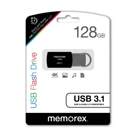 The Memorex USB 3.1 Flash Drive is the ultimate mobile storage solution. Get the most out of the USB 3.1 Gen 1 port on your computer and experience USB 3.1 Gen 1 next generation speed performance with transfer speeds up to 10x faster than USB 2.0! It’s the perfect solution for easily storing and quickly transferring all your large documents, high-resolution photos, HD videos, and more. USB 3.1 offers the same ease-of-use and plug-and-play capabilities as previous generations of USB technologies, but with exceptional speed improvements. Designed for fast and reliable portable storage, the Memorex USB 3.1 Flash Drive is compatible with most PC and Mac laptop and desktop computers with USB 3.1 Gen 1 port. What's more, it is backwards compatible with USB 3.0 and USB 2.0 host devices at standard USB 3.0 and USB 2.0 speeds, respectively.