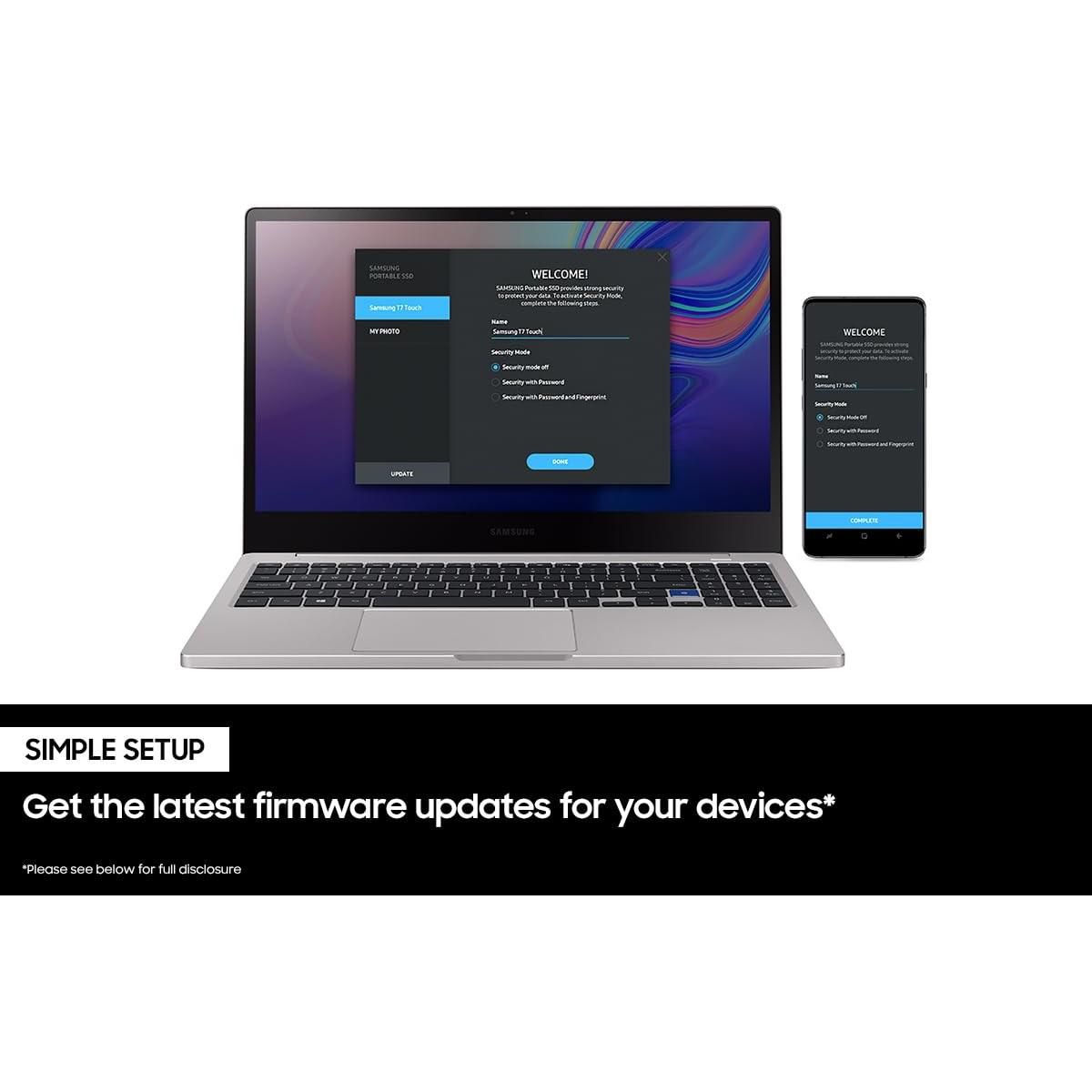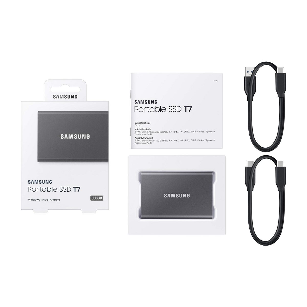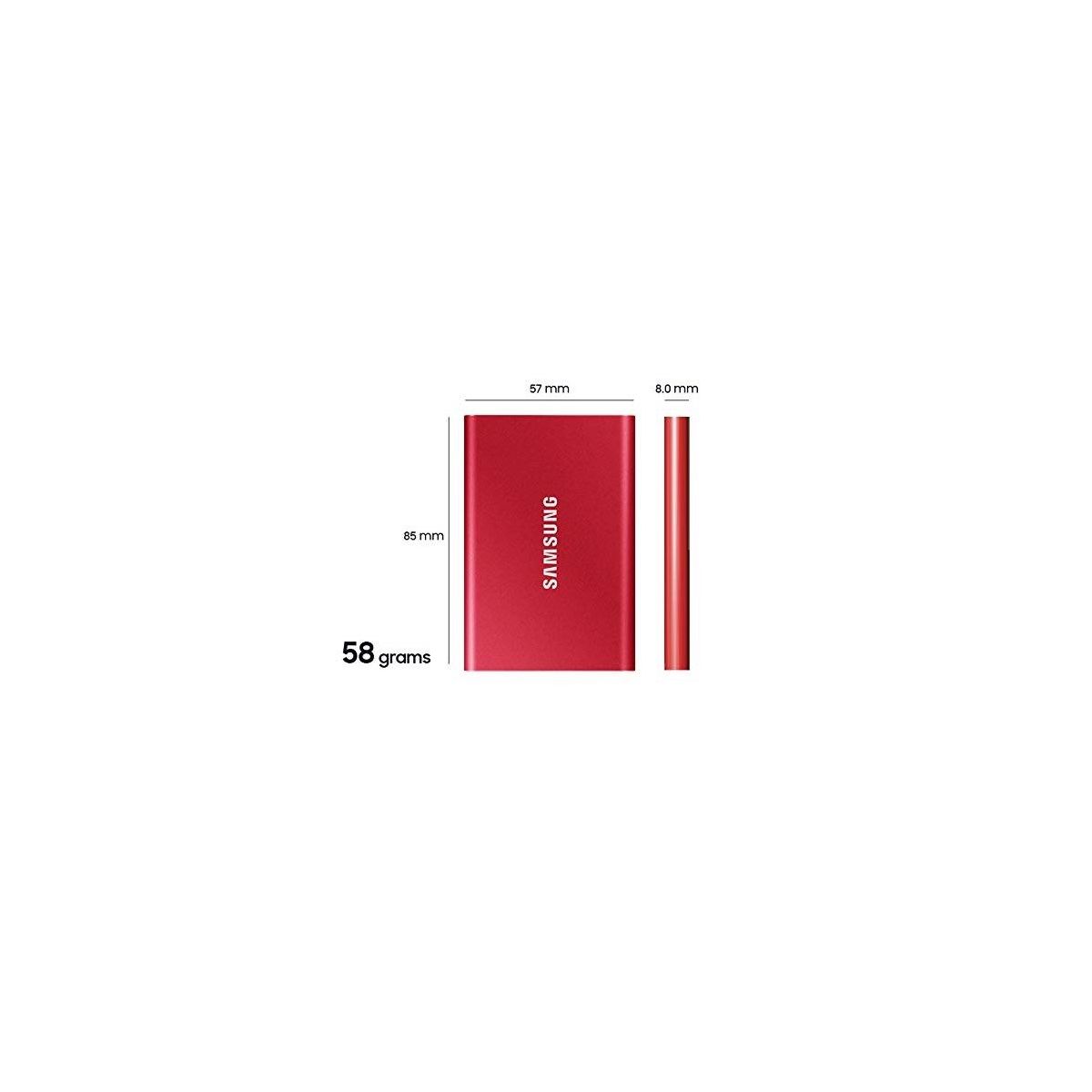 Light and pocket-sized, the Portable SSD T7 both delivers fast speeds and safeguards data for an easy way to store and transfer large files. Experience everyday high performance in your work and play with the T7. Transfer massive files within seconds with the incredible speed of USB 3.2 Gen 2 on the T7. The embedded PCIe NVMe technology facilitates sequential read/write speeds of up to 1,050/1,000 MB/s, respectively, making the T7 almost twice as fast as the previous T5 model. SSD stands for Solid State Drive, which means it's built with no moving parts. The hardware can be secured with an AES 256-bit encrypted password and is encased in a sturdy metal body that keeps data intact from falls of up to 2 meters.