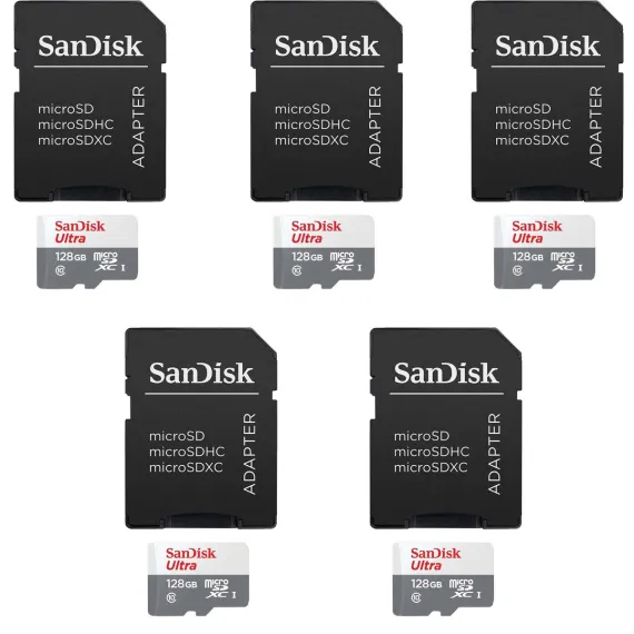 Five SanDisk 128GB Ultra MicroSDXC UHS-I Memory Card with Adapter