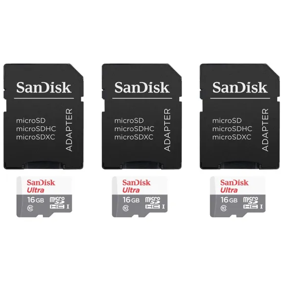 Three SanDisk 16GB Ultra UHS-I microSDHC Memory Card with SD Adapter