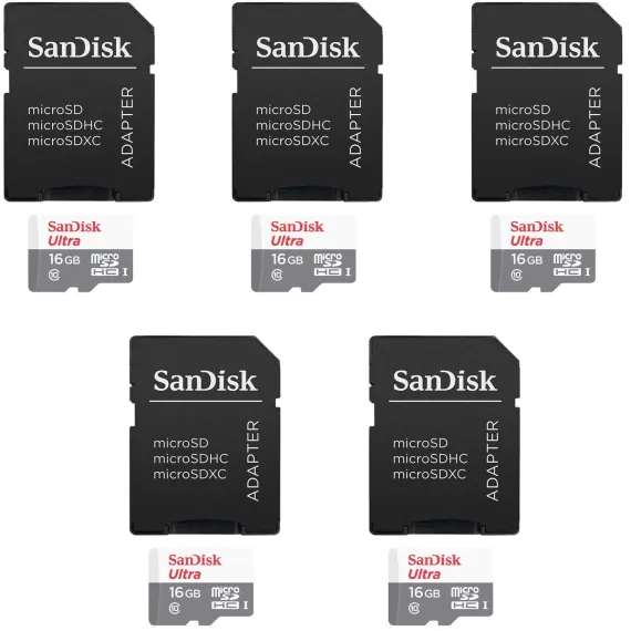 Five SanDisk 16GB Ultra UHS-I microSDHC Memory Card with SD Adapter