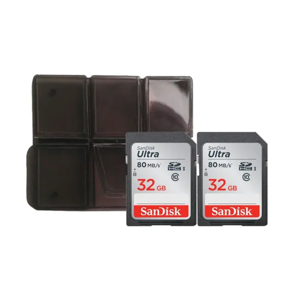 - 2x SanDisk 32GB SDHC Ultra 80MB/s