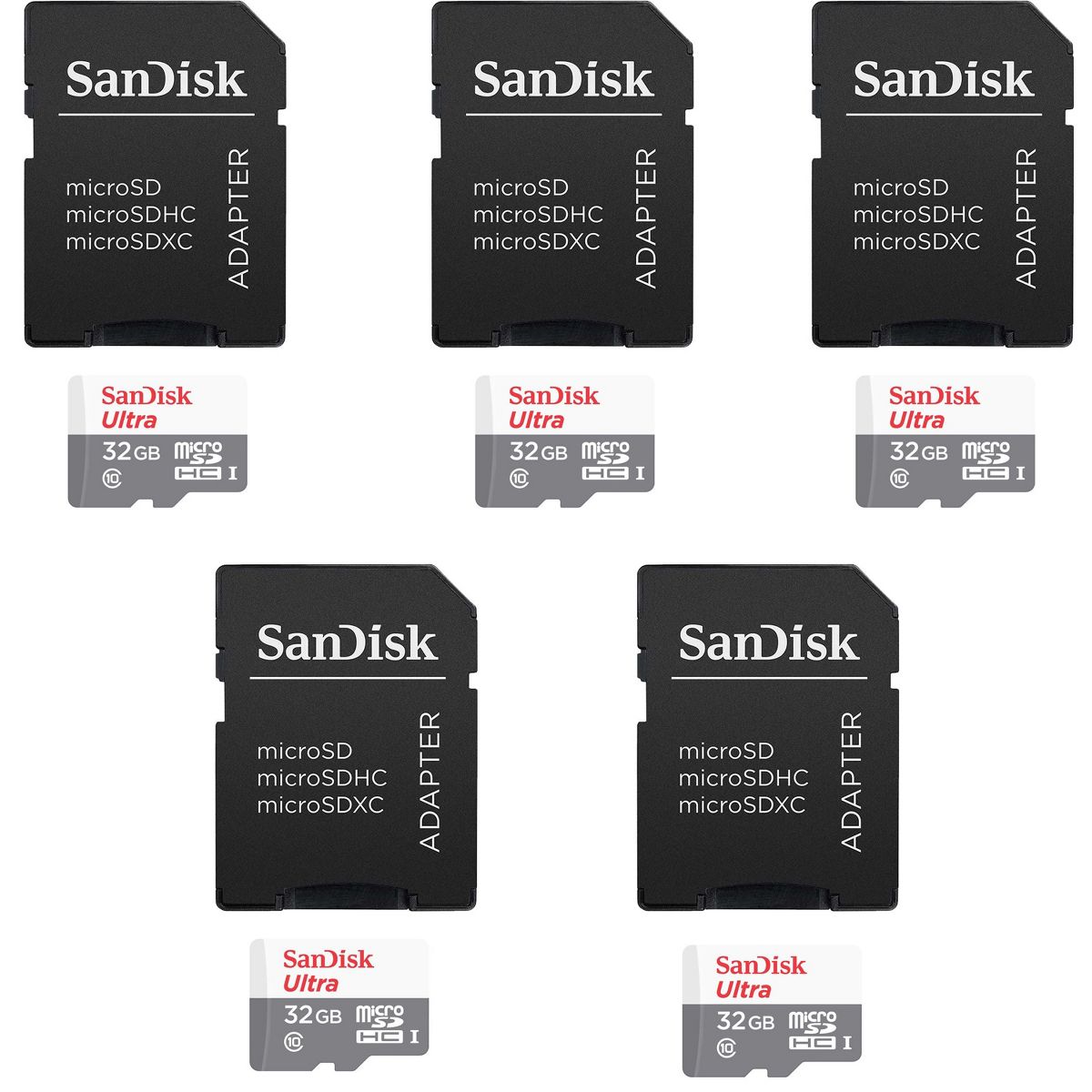 5x SanDisk 32GB Ultra UHS-I microSDHC Memory Card with SD Adapter