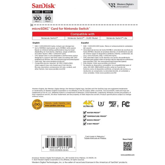 With incredible speed, the official licensed SanDisk microSDXC card for the Nintendo Switch System lets you add up to 36GB of space to your system. Spend less time waiting and more time gaming with read and write speeds of up to 100MB/s1 and 90MB/s1 respectively. Perfect for keeping your favorite games in one place. Backed by a lifetime limited warranty so you’re ready for the long haul.