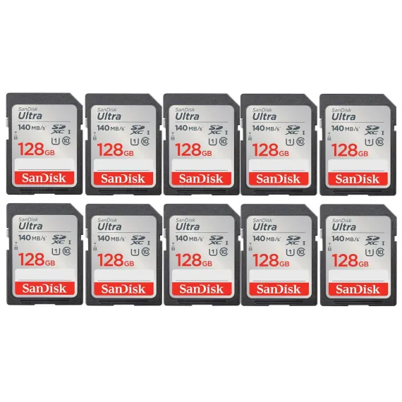 - 10x Sandisk Ultra 128GB SDXC UHS-I Class 10 Memory Card