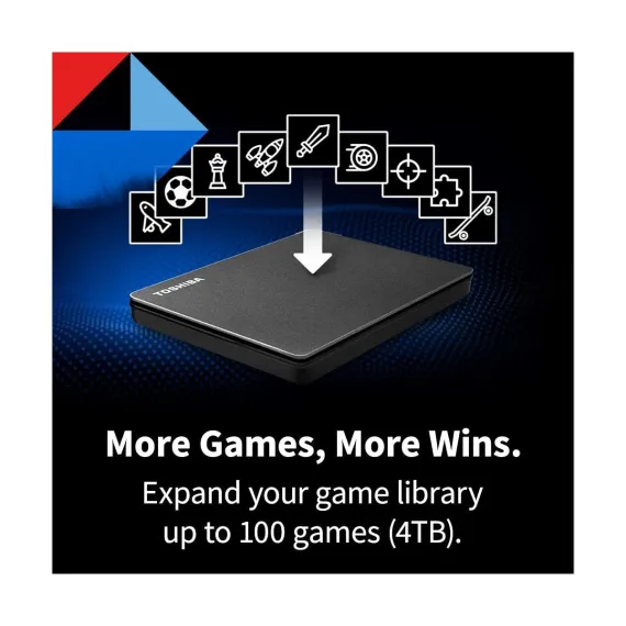 More game time means more victories. With the Canvio? Gaming Portable External Hard Drive, you won't have to worry about deleting games to make room for the hottest new release. The sleek, compact design allows you to store your favorite games in an easy-to-carry, lightweight casing. This portable hard drive is specially designed to meet your gaming needs, so you can spend more time winning. The Canvio? Gaming Portable Hard Drive is compatible with your Xbox?, PlayStation?, or PC gaming system, and features a firmware-customized "Always On" mode that is ready to respond to your next gameplay.