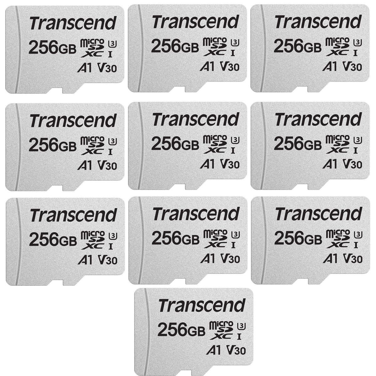 - 10x Transcend 256GB 300S UHS-I microSDXC Memory Card with SD Adapter