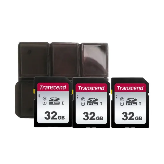 Transcend 32GB SDXC/SDHC 300S Memory Card TS32GSDC300S with Memory Card Holder - 3 Units