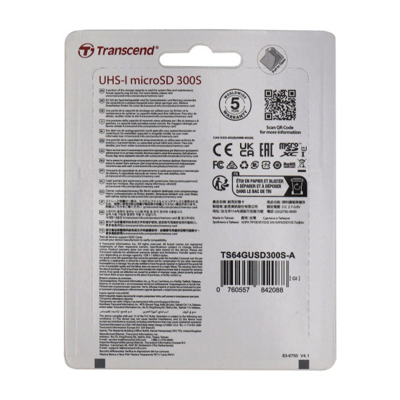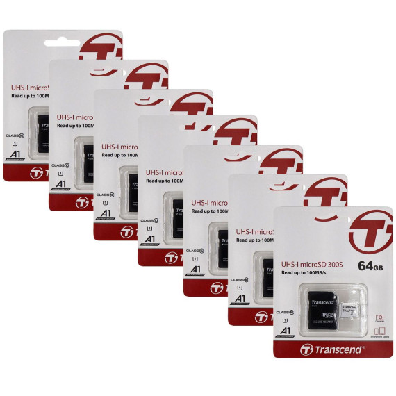 - 7x Transcend 64GB 300S UHS-I microSDXC Memory Card with SD Adapter