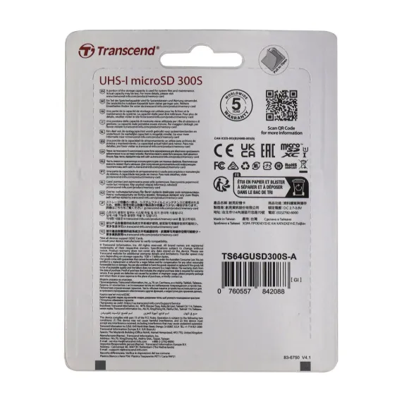 Transcend 64GB 300S UHS-I microSDXC Memory Card with SD Adapter - 7 Unit