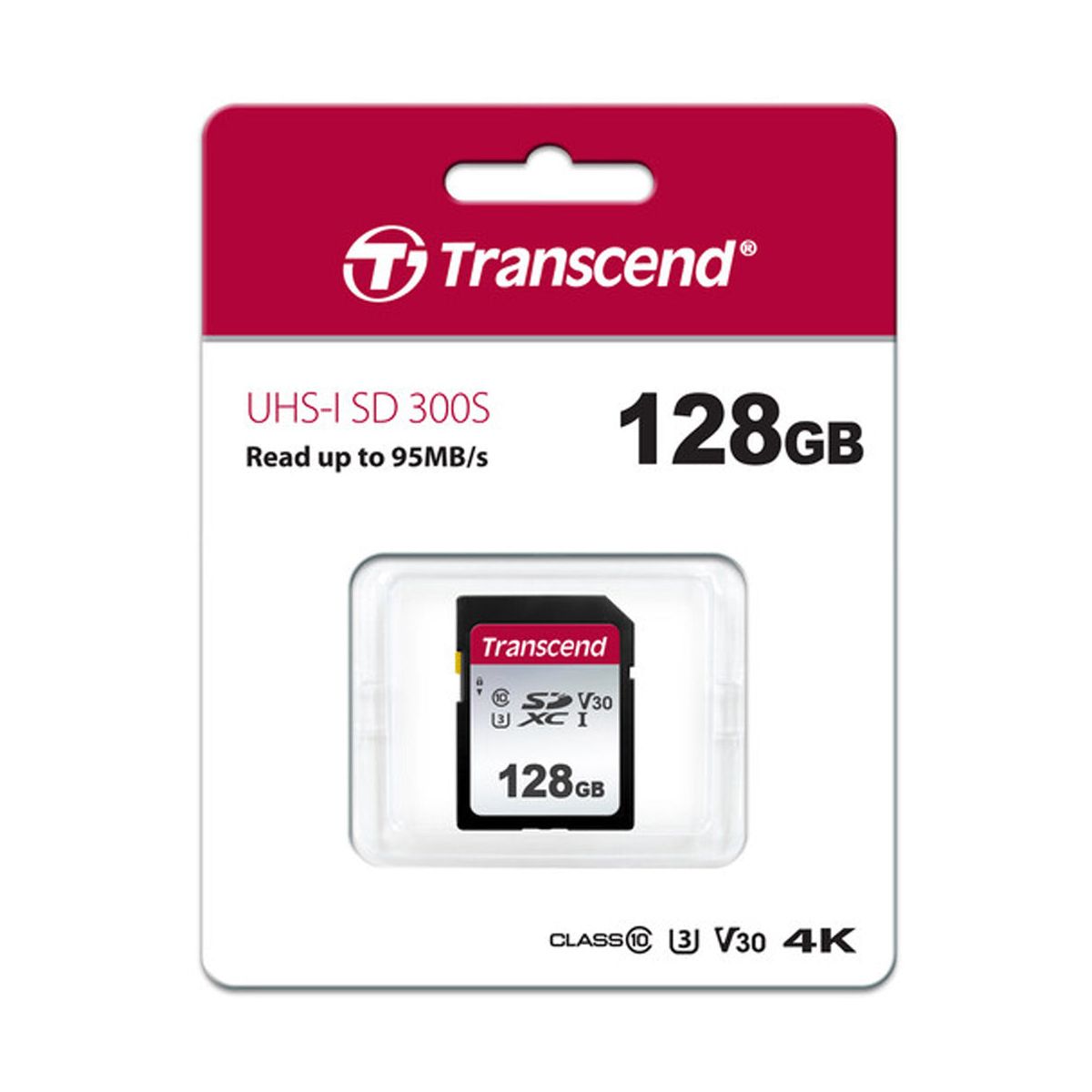 Transcend's 300S memory cards meet both the UHS Speed Class 3 (U3) and the UHS Video Speed Class 30 (V30) standards for 4K Ultra HD video recording, with read and write speeds of up to 95 MB/s and 45 MB/s respectively, plus minimum write speeds of 30 MB/s.
