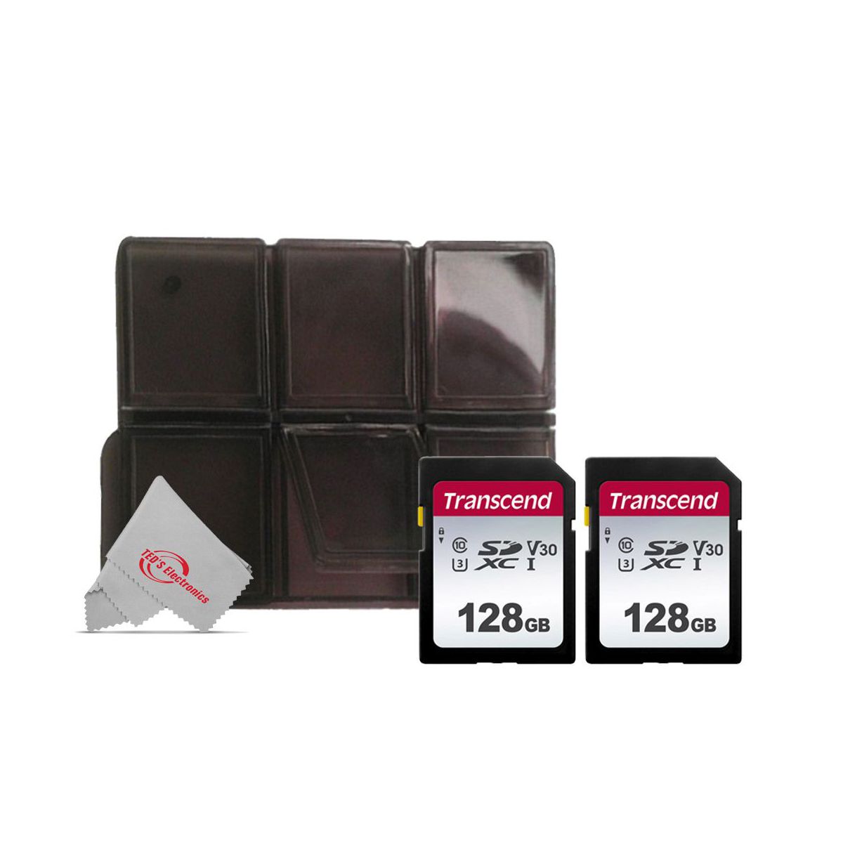 Transcend SDXC 128GB UHS -I U3 300s V30 Class 10 with Memory Card Holder - 2 Units