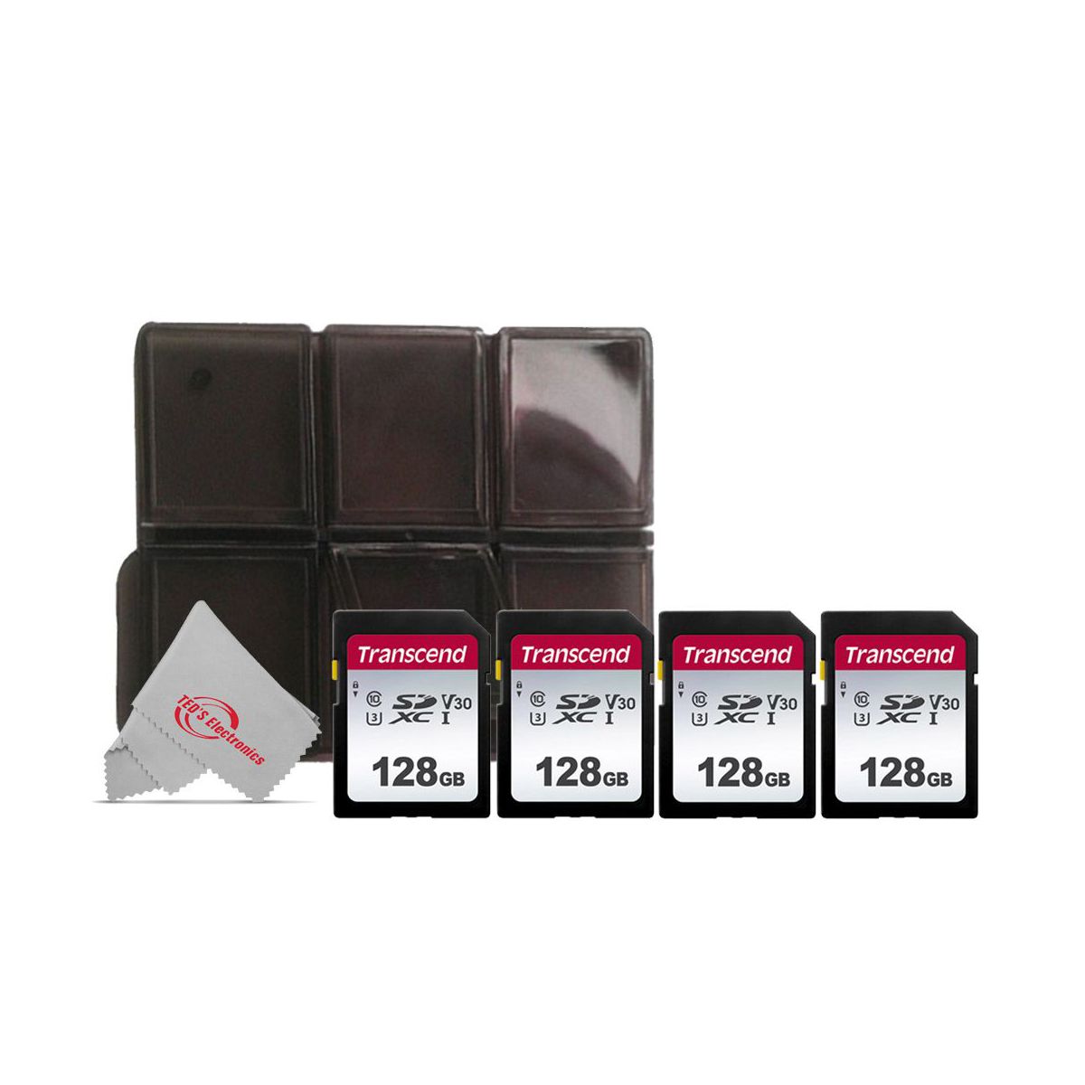 Transcend SDXC 128GB UHS -I U3 300s V30 Class 10 with Memory Card Holder - 4 Pack