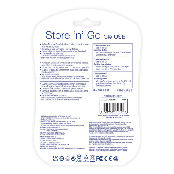Trust your files to a Verbatim classic! Store your data quickly and easily with Verbatim 16-GB Store 'n' Go USB-A drives. With a reliable name you've come to trust, this 3 pack of USB 2.0 drives in Red, Green, and Blue lets you take your data anywhere and everywhere. The convenient cap-less design with retractable housing protects the USB connector and easily slides in and out. These Verbatim USB drives include built-in Microban antimicrobial product protection. This antimicrobial technology helps prevent the growth of bacteria, keeping your USB drives cleaner! Disclaimer: Microban is a registered trademark of Microban Products Company.