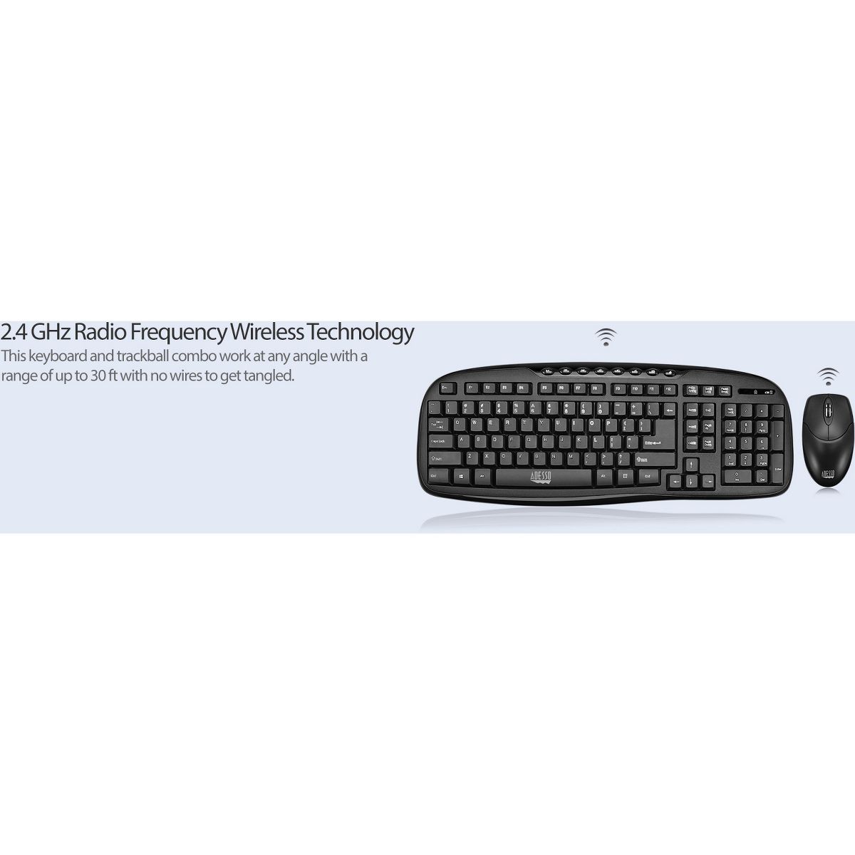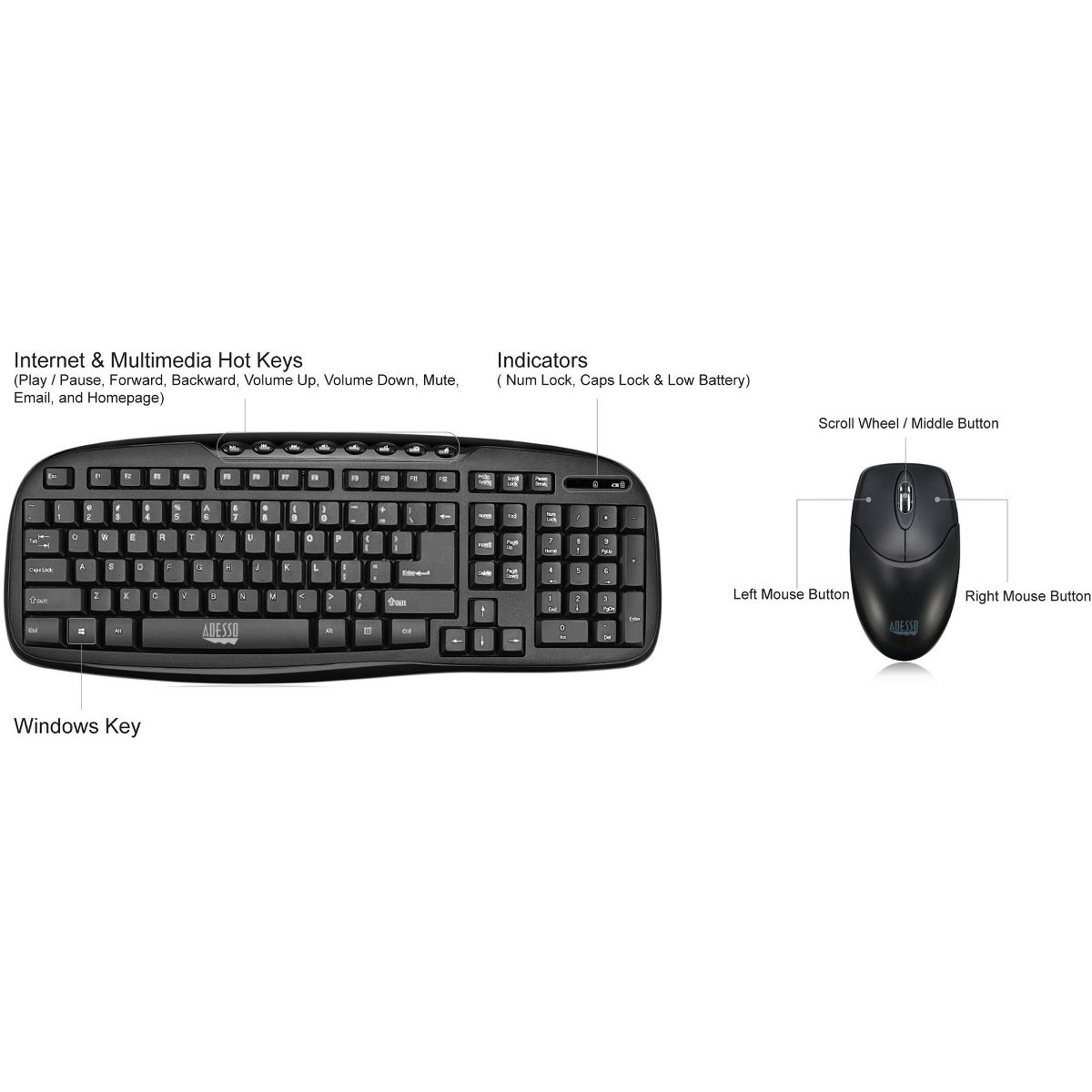 Adesso WKB-1330CB - 2.4 GHz Wireless Desktop Keyboard and Mouse Combo - Retail - USB Wireless RF 103 Key - English (US) - USB Wireless RF Optical