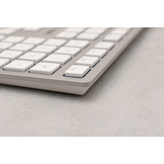 Wired keyboard features a chiclet design with 12 functions to make it easy to use on your Mac every day. Frequently used functions can be accessed with a single keystroke. Compact dimensions leave enough space on your desk for other equipment. The scissor mechanism is practically silent and provides an excellent typing experience. Numeric keypad means the keyboard is well prepared for frequent number entries. Built-in metal plate keeps the keyboard stable and helps to prevent slipping on your desk. Adjustable design uses rubber feet to easily create a steeper angle when typing. Keyboard is designed for all end devices with a USB-A connection and Mac OSX operating system.