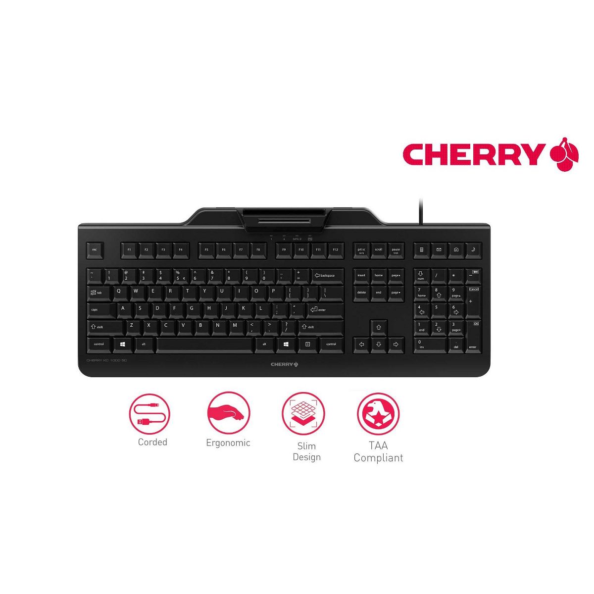 Cherry Secure Board 108-Key Wired USB Keyboard with Smart Card Reader