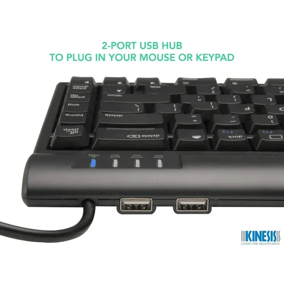 Most keyboards including ergonomic models have a 10 degree positive slope from front to back. These designs tend to bend your wrists. The Freestyle2 has a zero degree slope which minimizes the height, effectively creating negative slope and reducing wrist extension. The slim design provides a 2-in-1 office and travel keyboard.